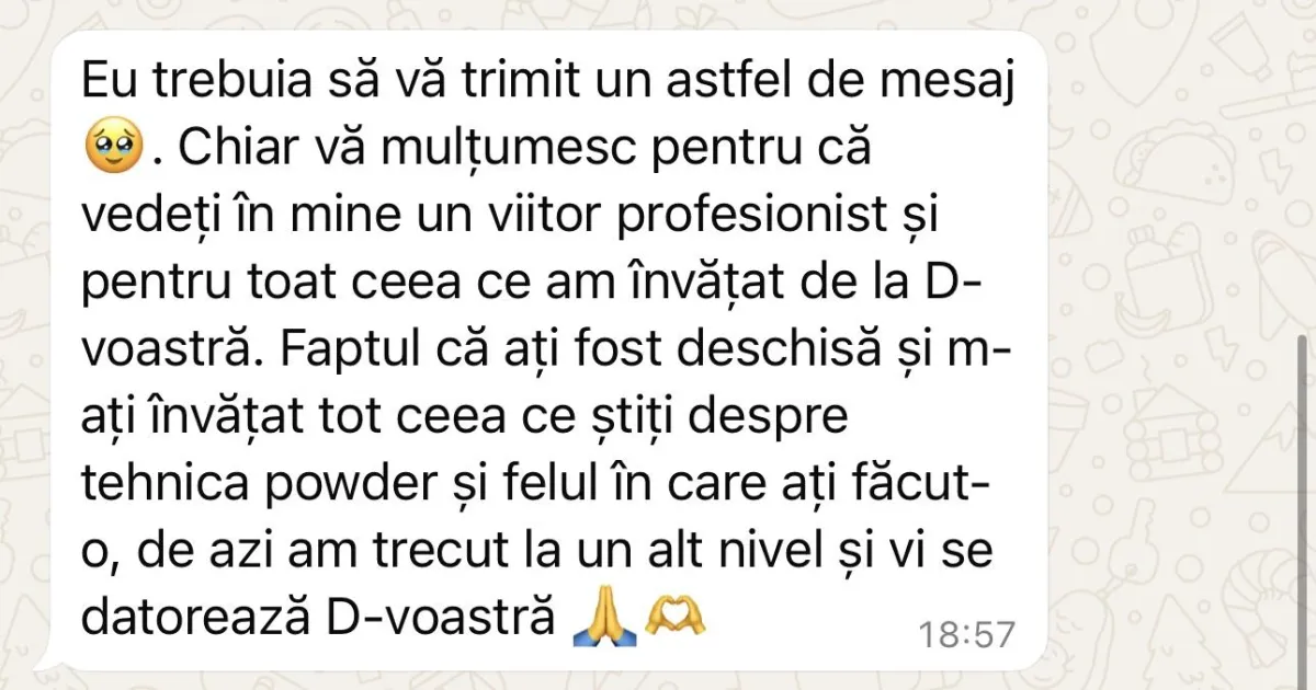 Da! Programul este conceput atât pentru începători care au făcut un curs de bază, dar nu au încredere să lucreze pe model uman, cât și pentru cei care vor să își îmbunătățească tehnica Powder Brows. Îți ofer îndrumare pas cu pas, astfel încât să evoluezi rapid și corect.